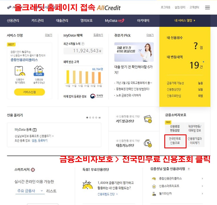 가장 대표적인 나이스지키미와 올크레딧를 통한 개인신용점수 조회 방법을 알려드리니 그대로 따라 하시면 됩니다.