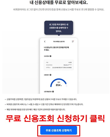 3) 하단의 무료 신용조회 신청하기를 클릭합니다.