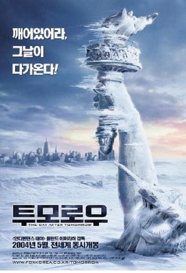 영화 투모로우는 2004년도에 개봉한 재난 액션 영화다. 남극을 탐사하던 잭 홀 박사(데니스 퀘이드)는 지구가 이상기후를 보인다는 것을 발견한다. 그리고 세계 기후회의에서 자신의 주장을 발표하지만 무시당한다. 하지만 얼마 후 지구 곳곳에서 이상기후 증상이 나타나기 시작하고 커다란 폭풍우가 미국 뉴욕으로 향한다.