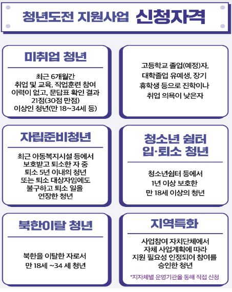 ① 6개월 이상 취업 및 교육·직업훈련 참여 이력이 없고(고등학교 졸업(예정) 자는 예외), ② 구직단념청년 문답표(서식 16) 21점 이상(만점 30점)인 청년(만 18~34세)